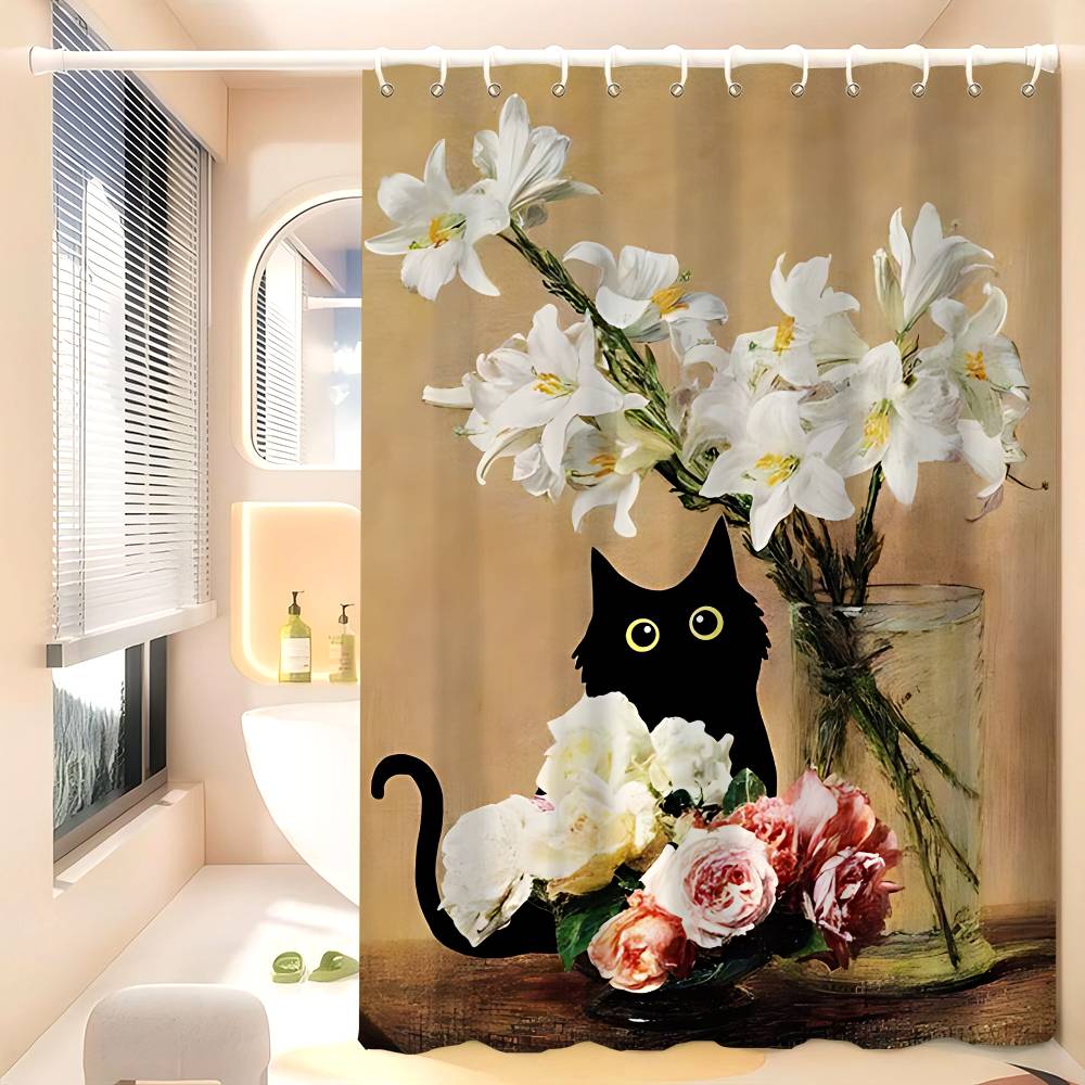 Lustige Kunst Matisse Monet Schwarze Katze Van Gogh Sonnenblumen Duschvorhang - Wasserabweisend und auslaufsicher, Schimmel- und Mehltau