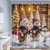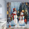 Niedliche Blaue Schneemann Weihnachts-Duschvorhänge Weihnachtsgeschenk Winterwald Zeder Naturlandschaft Heim Badezimmerdekor Badvorhang-Set