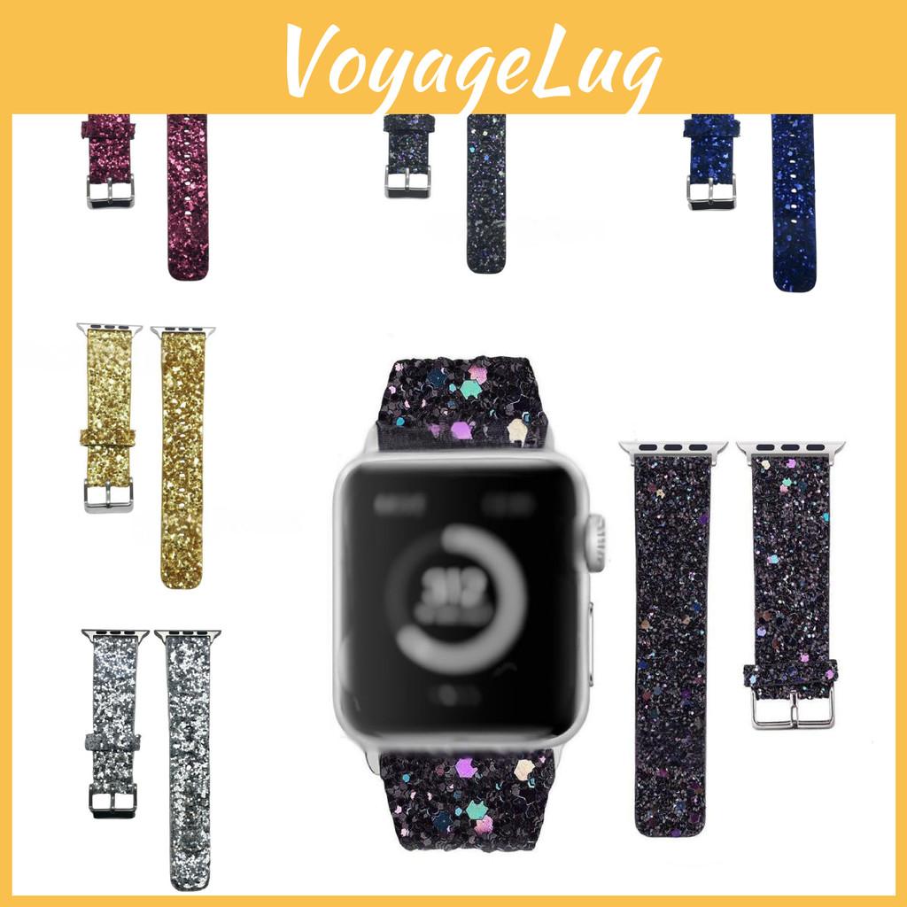 This fashion-oriented Apple Watch band features leather strap with a glittering finish, designed to enhance daily wear. Made of high-quality leather. Its pin buckle ensures secure attachment and easy adjustment. Ideal for casual or formal occasions, it supports comfortable, stylish use. Wipe clean with a soft cloth to maintain its shine.