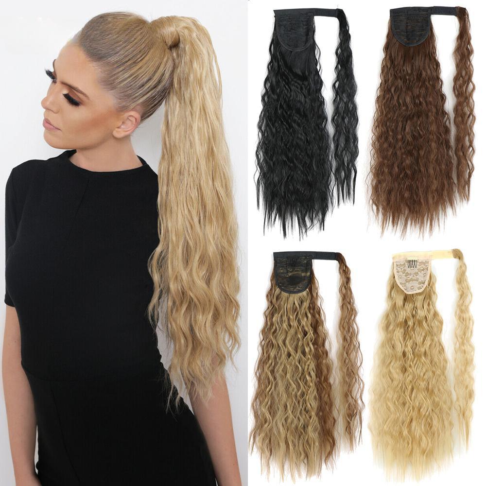 Synthetisches, maisgewelltes, langes Pferdeschwanz-Haarteil, zum Aufstecken, Clip-Haarverlängerungen, Ombre, brauner Pferdeschwanz, blondes Fack-Haar