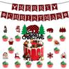 Weihnachtsdekorationsarrangement Rot und Schwarz Kariert Happy Holidays Flagge Ballon Kuchenkarte Set