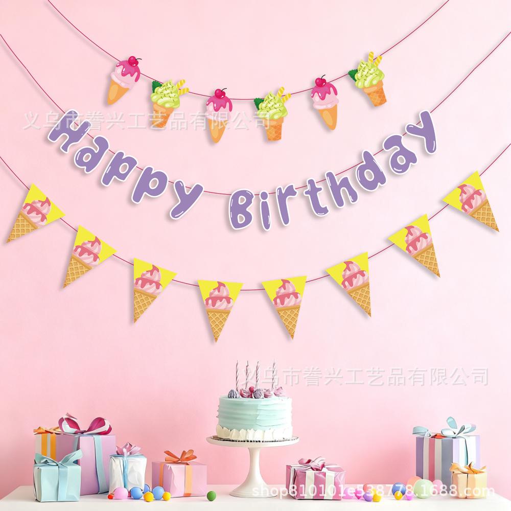 Spot Birthday Party Flag Summer Fruit Lemon Watermelon Ice Cream Decoration Flag Party Decoration Banner