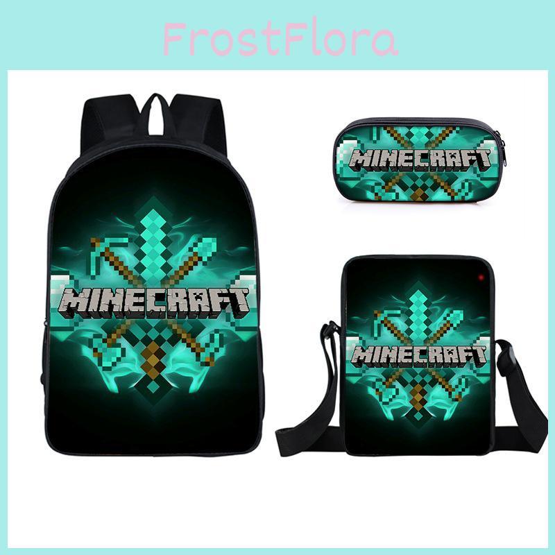 This Minecraft-themed school backpack set features a polyester-cotton blend design with breathable, durable Oxford fabric and printed graphics. The lightweight, shock-absorbing air cushion shoulder straps provide comfortable carrying for students. Ideal for elementary school use, it includes a backpack, pencil case, and shoulder bag. Wipe clean with a damp cloth for maintenance.