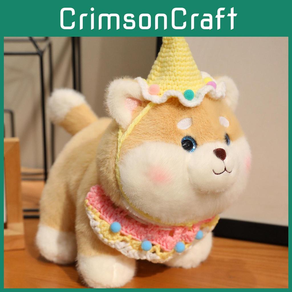 Cute Birthday Hat And Cartoon Pattern Knitted Scarf Shiba Inu Cartoon Toy Plush