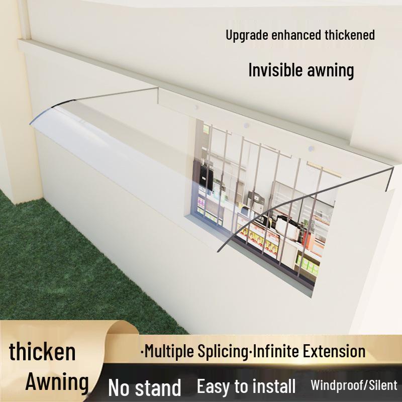Rahmenloses transparentes Fenstervordach: Geräuschlose Regenfeste Balkon-Dachvorsprung-Sonnenblende