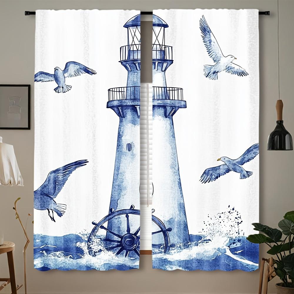 2 Stück Nautischer Leuchtturm Aquarell Möwe Anker Thema Polyester Vorhänge, Zeitgenössischer Stil, Ganzjährig, Maschinenwaschbar, Deko