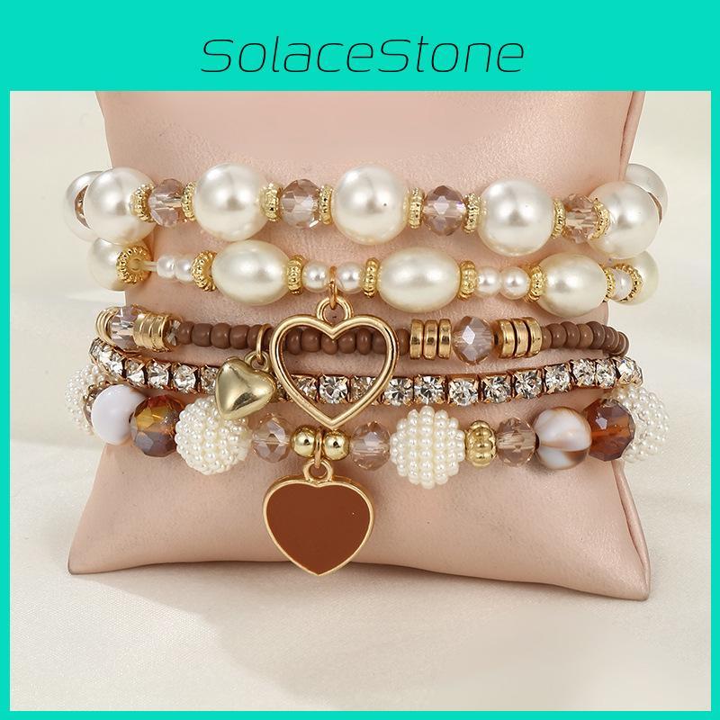Dieses mehrteilige Armbandset im angesagten Stil besticht durch handgefertigte Perlen und geometrische Formen und verleiht jedem Outfit einen zarten und modischen Look.. Die Armbänder sind aus Imitationsperlen gefertigt und haben eine Länge von ca. 6–19,5 cm. Dank ihres dezenten Gewichts tragen sie sich angenehm.. Diese vielseitigen Accessoires eignen sich perfekt als Geschenk zu Jubiläen oder besonderen Feierlichkeiten und werten sowohl legere als auch elegante Outfits auf.. Mit einem feuchten Tuch reinigen, um ihr Aussehen zu erhalten.