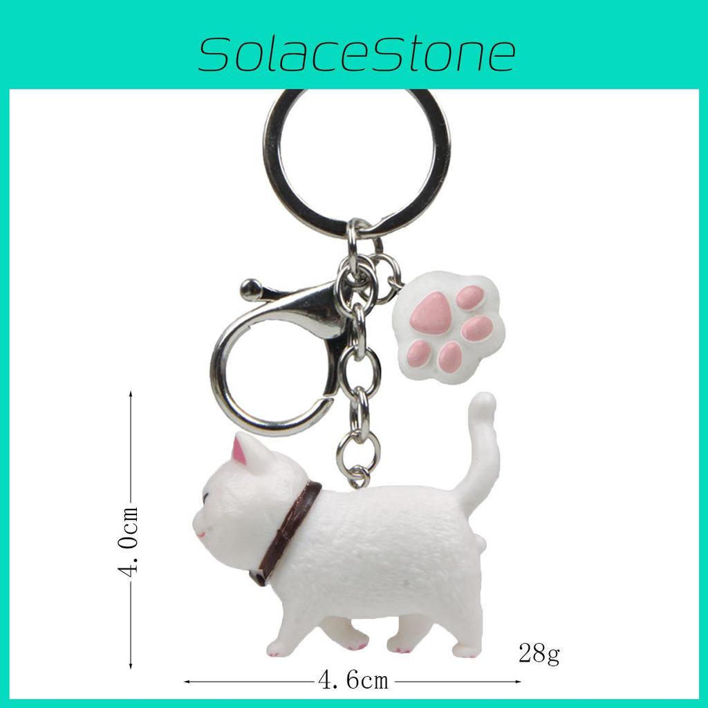 Cartoon Orange Cute Black Gray White Cat And Paw Pendant Keychain Gift For