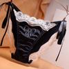 Crystal Bow Rhinestone Satin Panties Ice Silk Lace Briefs for Women Sweet Lace Tie Panties Girl