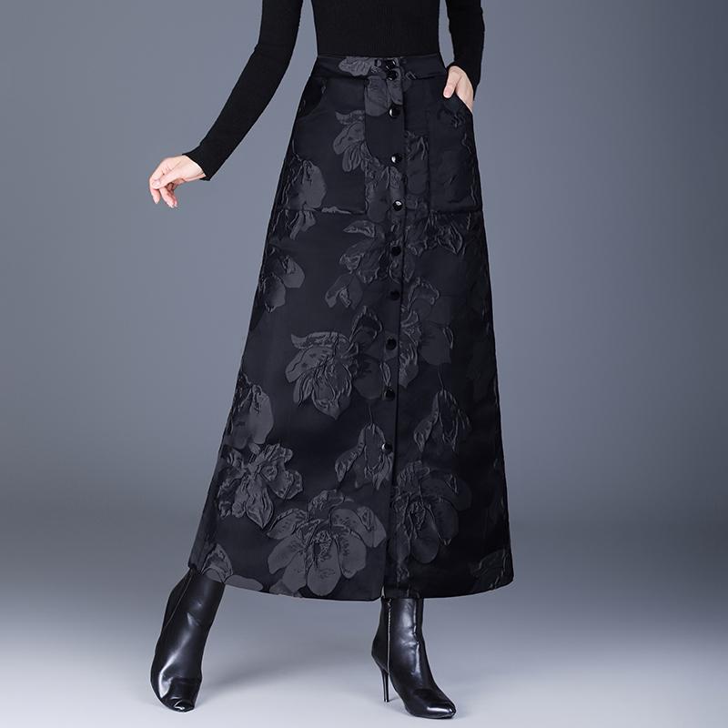 Jacquard Baumwolle Gepolstert Übergröße Hohe Taille Vintage Floral Frühling Herbst Winter Lässig Locker Lang für Frau Röcke Damenrock
