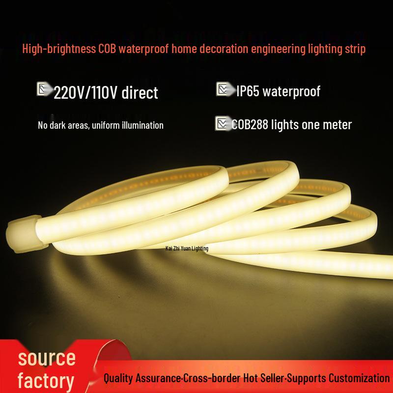 Waterproof Flexible COB LED Light Strip for Indoor/Outdoor Use, 110V/220V, Ideal for Living Room Ceiling and Background Wall.