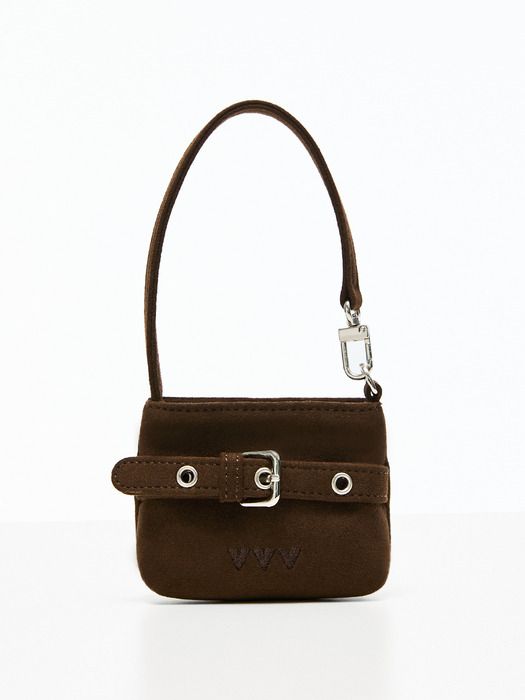 VVV Suede Buckle Mini Hobo Tote Bag Keychain _ Dark Brown