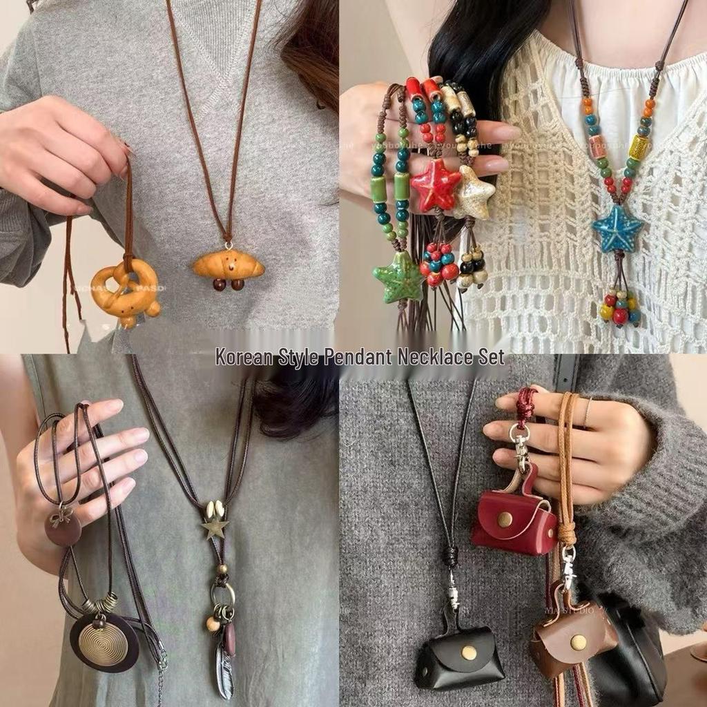 Böhmische Seestern-Halskette: Bunte Perlenkeramik Ethno-Stil mit gewebter Kordel für Damen