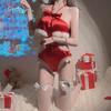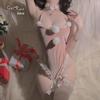 Alluring Velvet Mesh Open Crotch Christmas Lingerie Bodysuit Set for Women
