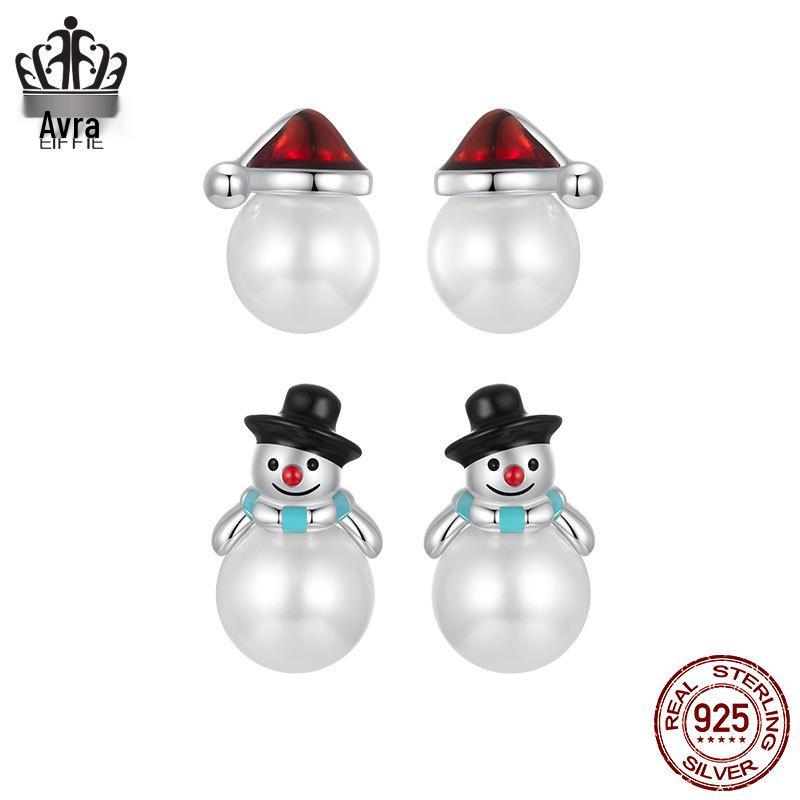 Everlove Perlen Schneemann Ohrstecker: S925 Sterlingsilber, rhodiniert Weihnachtsschmuck für Damen