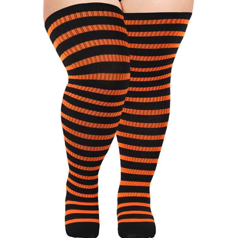 Überknie-Kompressionsstrümpfe mit Streifen in Übergröße - Extra dick für Halloween, Herbst, Winter und Weihnachten