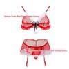 Christmas Lingerie Bikini Set: Mesh Three-Piece with Garter