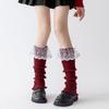 Angora Red Lolita Lace Calf Socks for Women - Korean Style Autumn/Winter Ballet Leg Warmers, Perfect for New Year and Christmas.