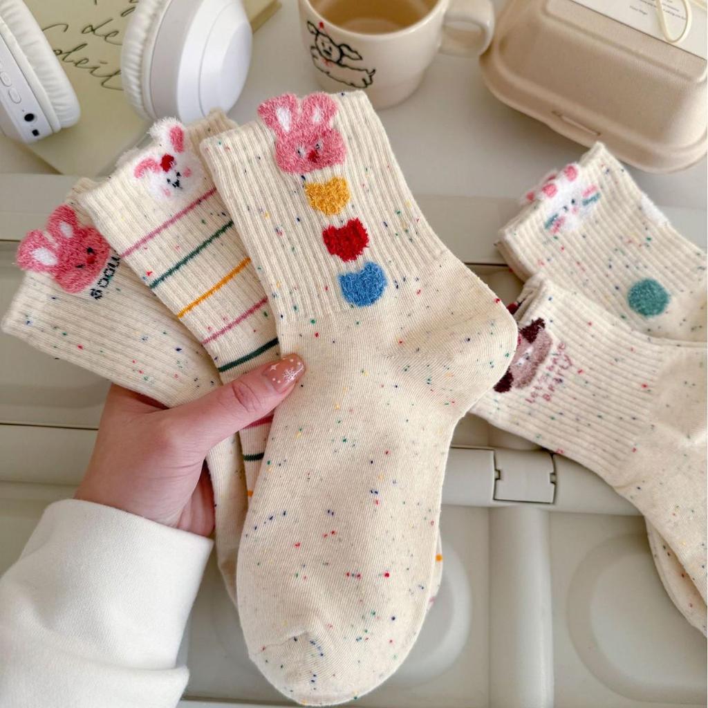 Niedliche japanische Cartoon-Bären-Garnsocken - Damen-Wadenlang, Koreanischer Akademie-Stil, Vielseitig, Kreativ und Stilvoll.