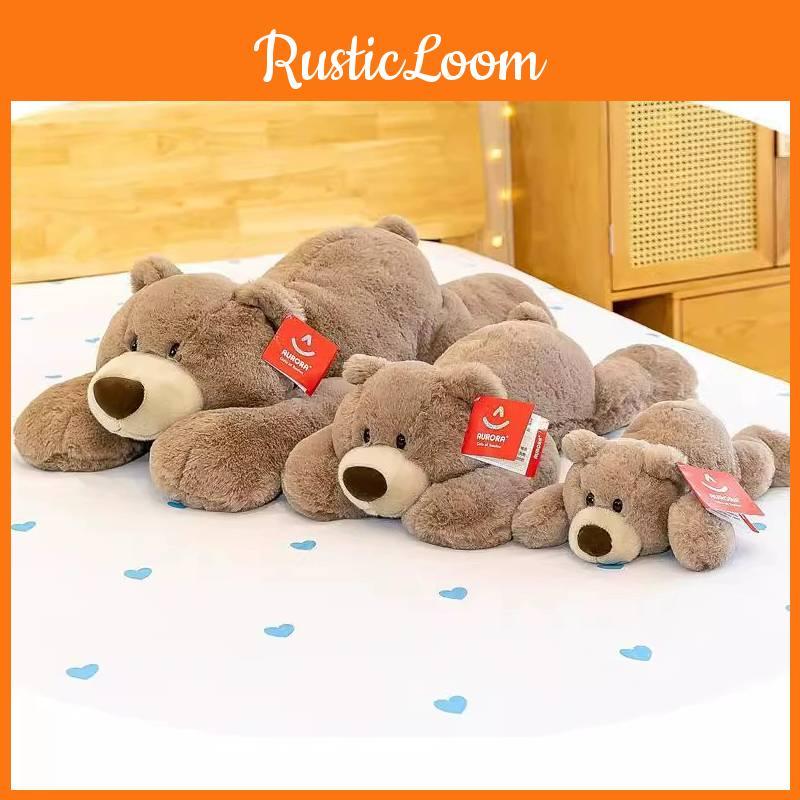 This plush bear toy features a lying pose design, crafted from durable, four-way stretch plush material for added softness and resilience. Ideal for children's birthdays or as a decorative gift.