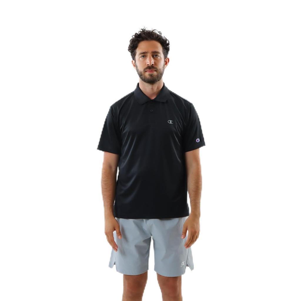Champion Kurzarm Antibakterielles und Logo-Polo Größe L Herren Geruchsresistent Schnelltrocknend Ein-Punkt-Shirt, Schwarz, (C3-ZS303)