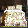 Affe Bettbezug King Queen Lieblich Cartoon Tier Bettwäsche Set für Kinder Junge Mädchen Grün Dschungel Baum 2/3tlg. Polyester Steppdeckenbezug
