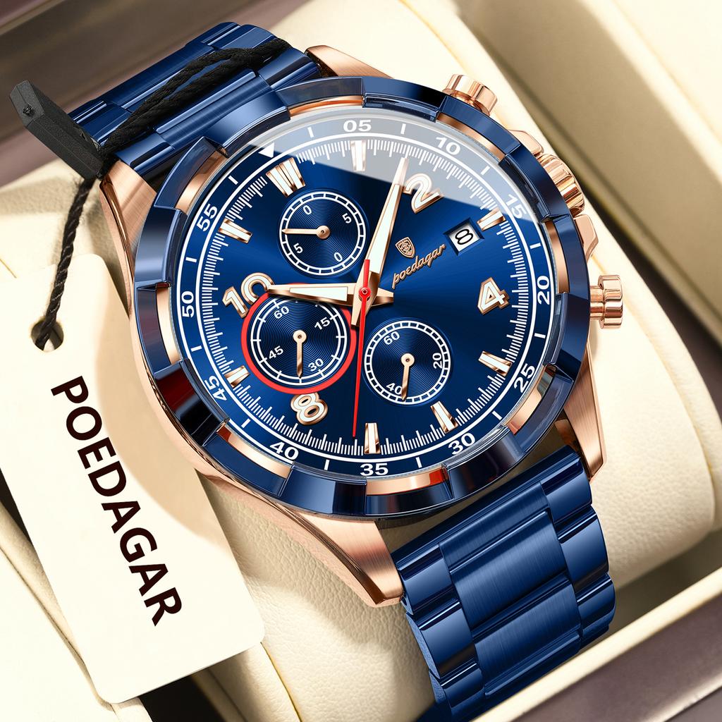 POEDAGAR Fashion Men's Wristwatch Luminous Waterproof Stainless Steel Man Watch Chronograph Date Business Quartz Watches For Men