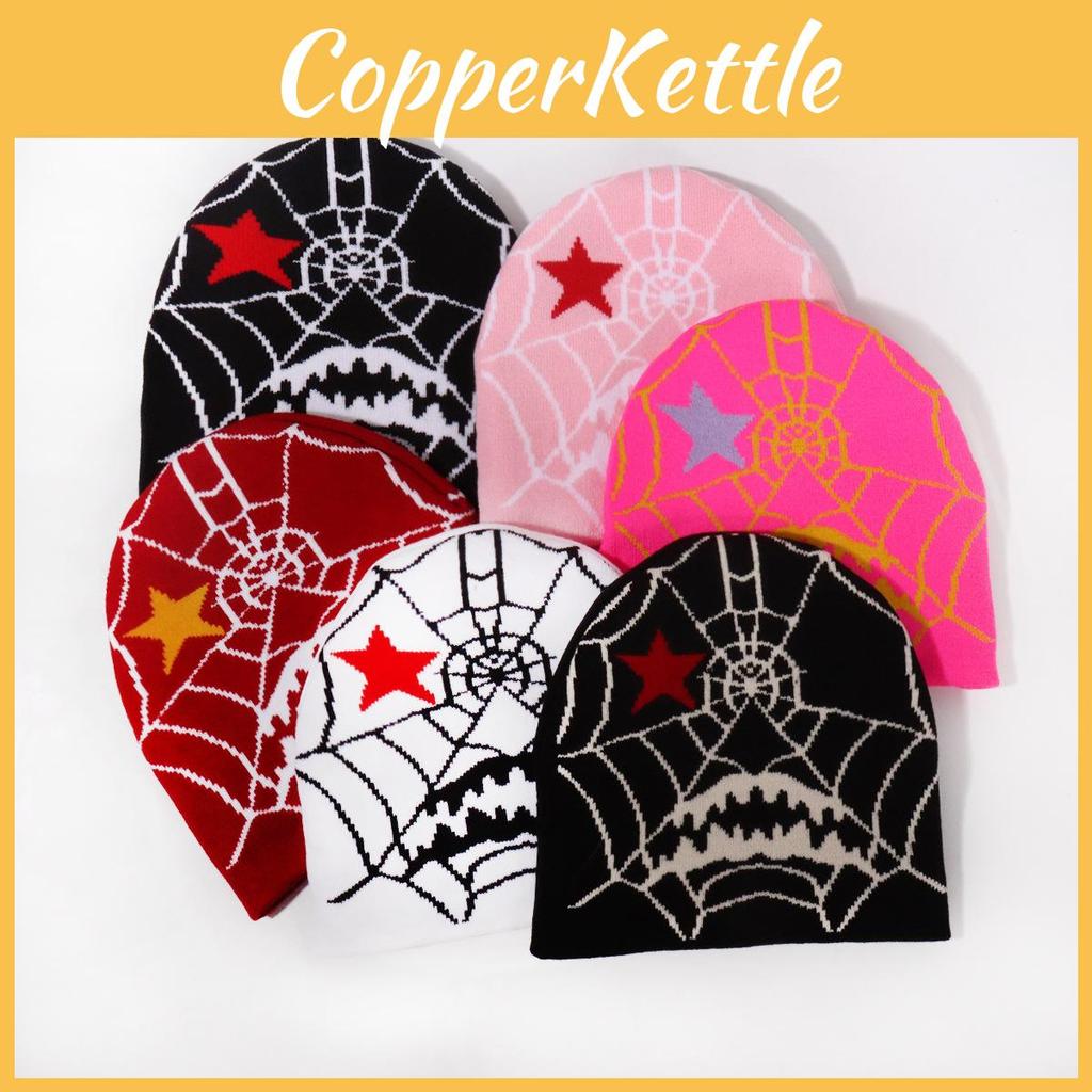 Winter Acrylic Autumn Knit Cap With Spider Web And Starpattern For Daily Casual