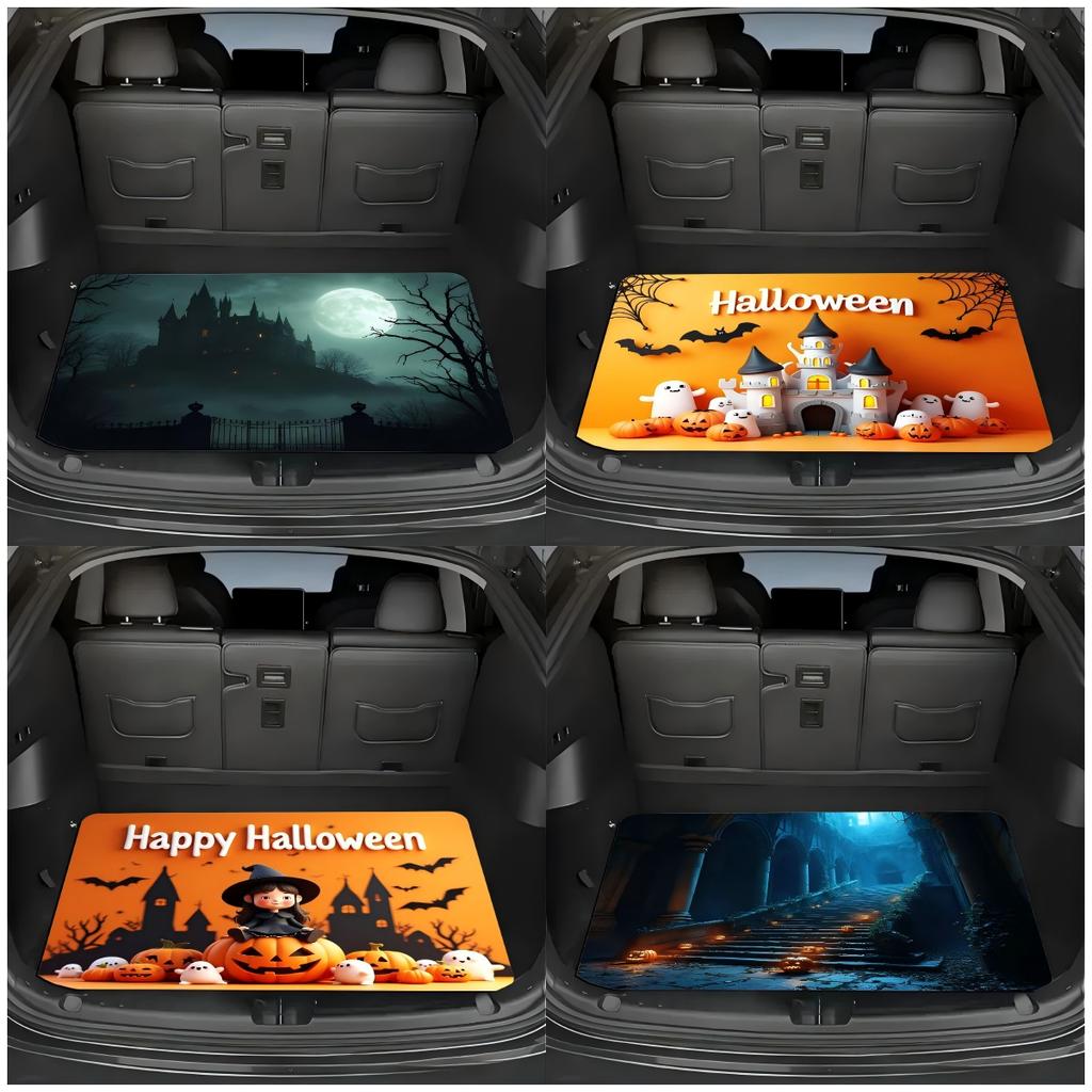 Unheimliche Halloween Kürbis Lichter Kieselgur Rutschfest Abriebfest Schmutzige Kofferraum Fußmatten Heimdekoration