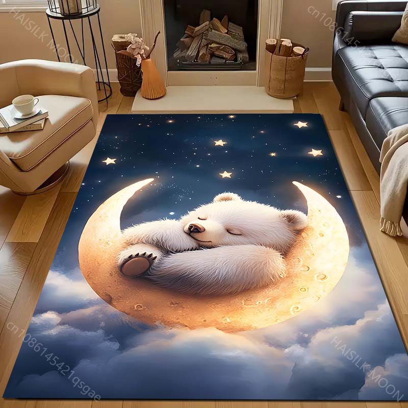 Kleiner Bär schläft auf dem Mond Druck Teppich für Schlafzimmer Wohnzimmer Bettseite Sofa Bodenmatte Moderne Heimdekoration Bereichsteppich Geschenke