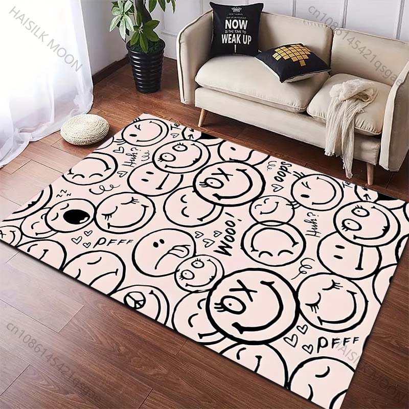 Auswahl mehrerer Größen Kreativer Teppich mit Smiley-Gesichtsmuster für Wohnzimmer Schlafzimmer Sofa Heimdeko Rutschfeste Bodenmatte Große Größe
