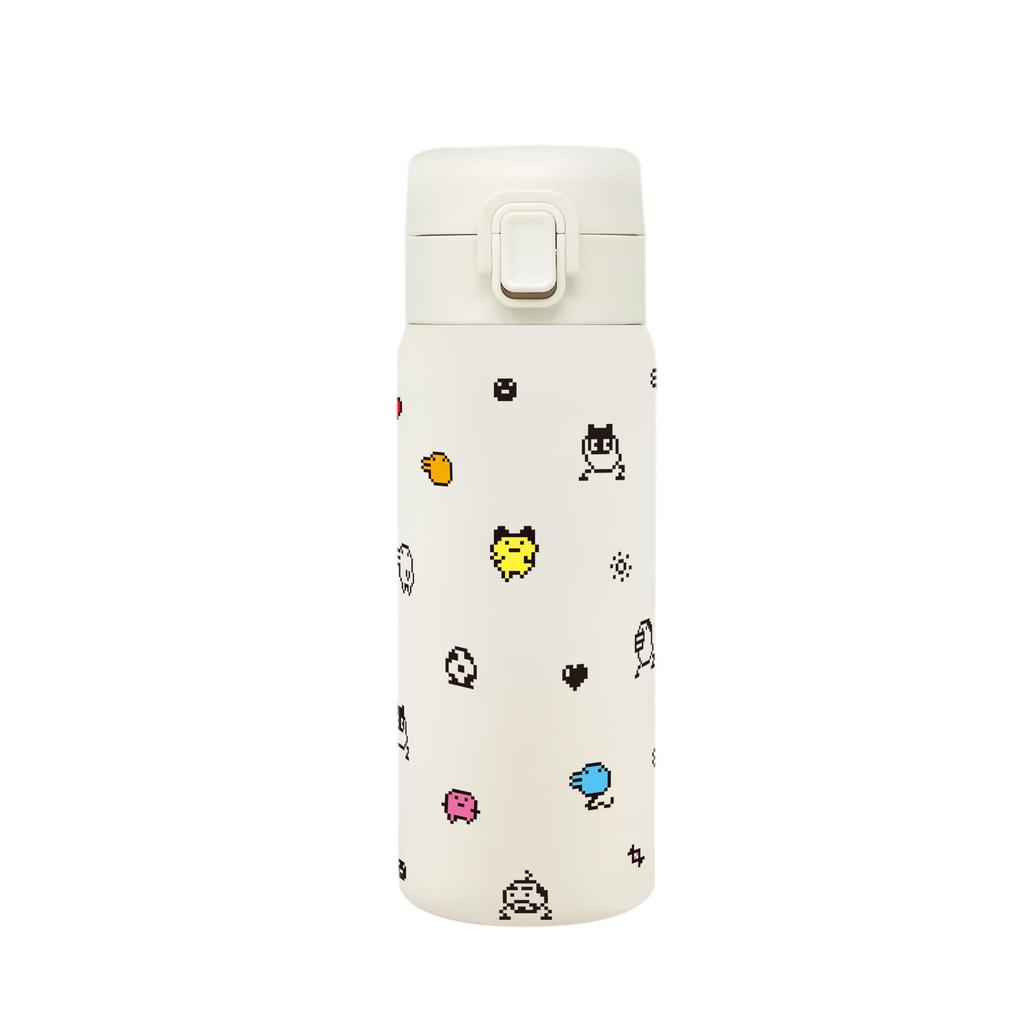 Tamagotchi Vacuum Insulated Stainless Steel 350ml with Easy to Use with One Model Double-Walled One-Push Bottle, (Dot Design), One-Touch Lock, Hand,