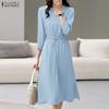 ZANZEA Damen Quadratischer Kragen Sommer Lässig 3/4 Ärmel Langes Kleid