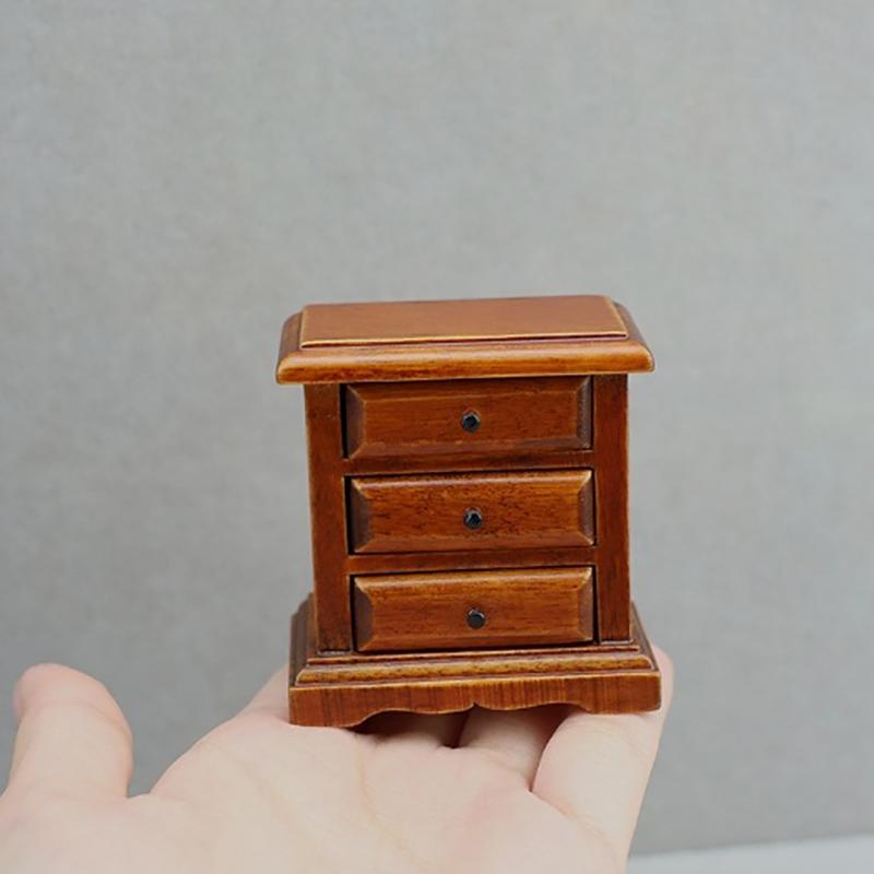 Miniatur Kastanien Nachttisch Kommode Aufbewahrungsschrank 1:12 Puppenhaus DIY Zubehör Möbel Modell Spielzeug