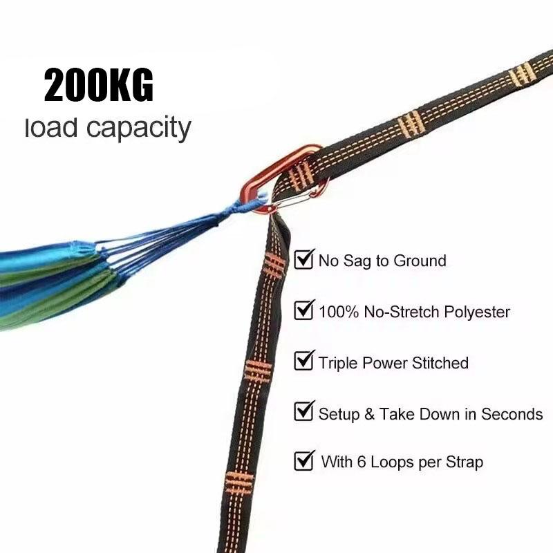 Correias De Poliéster Reforçado Para Acampamento AO Ar Livre Black Hammock Straps 5 Ring Alta Carga-rolamento Farpado 2pcs