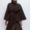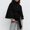 Damen Herbst und Winter Neue Mode Einfarbiges Cape Stehkragen Knopf Gürtel Windbreaker Jacke