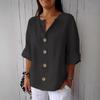 2025 Neues Sommer Lockeres T-Shirt Damen V-Ausschnitt Baumwolle und Leinen Knopf-Tops