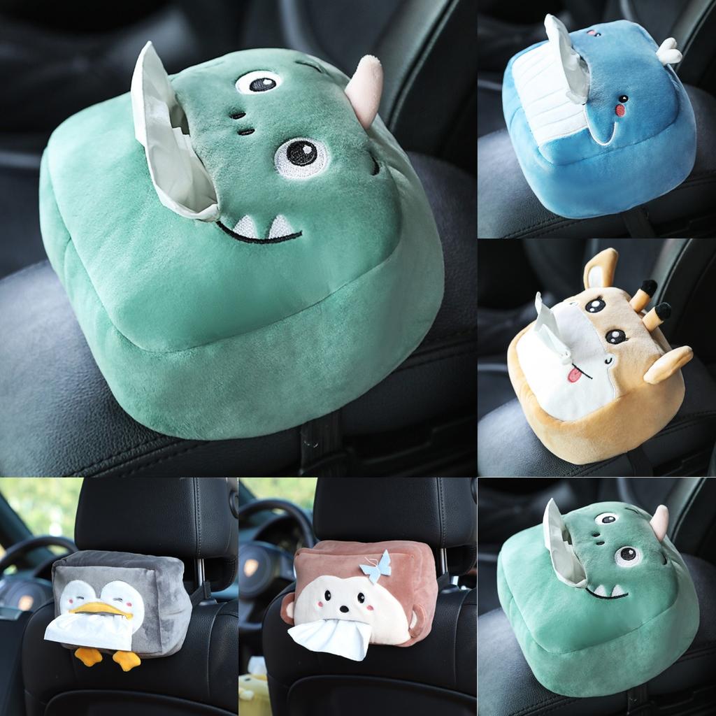 Cartoon Car Tissue Box Cute Plush Animals Napkin Paper Holder Portable Auto Armrest Box Tissue Paper Storage Case Car Decoration