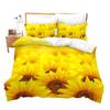 Sonnenblumen-Bettbezug, gelbes Blumen-Bettwäscheset, Einzel- und King-Size-Mikrofaser, Bauernhaus-Bettbezug mit grünen Blättern und Blumenmuster und Kissenbezug