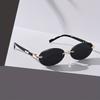2 Pairs of Small Frame Metal Sunglasses for Women Vintage Oval Frame Fashionable Cutout Edges No Frame Trendy Eyewear