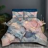 3-teiliges Bettwäscheset mit blauem und rosa Marmormusterdruck, 1*Bettbezug+2*Kissenbezug, für Queen, King, Doppelzimmer