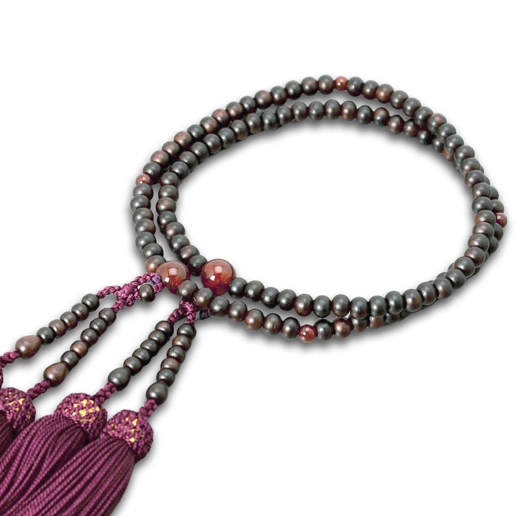Women's Buddhist Prayer Beads, Double-Strand, Kyoto Buddhist Prayer Beads, Matte Rosewood with Two Agate Rings and Silk Tassel, Suitable for Eight