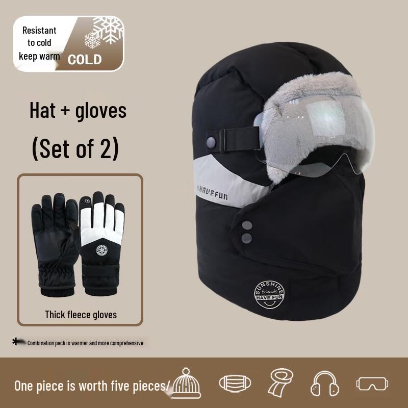 HANDUNYOU Winter Windproof Lei Feng Cycling Hat with Earflaps & Gloves