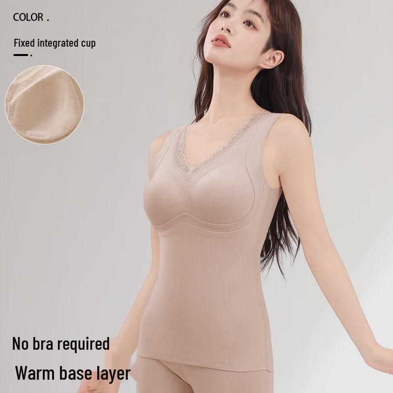 Duqingmao Damen V-Ausschnitt Maulbeerseide Kaschmir Thermounterwäsche Oberteil