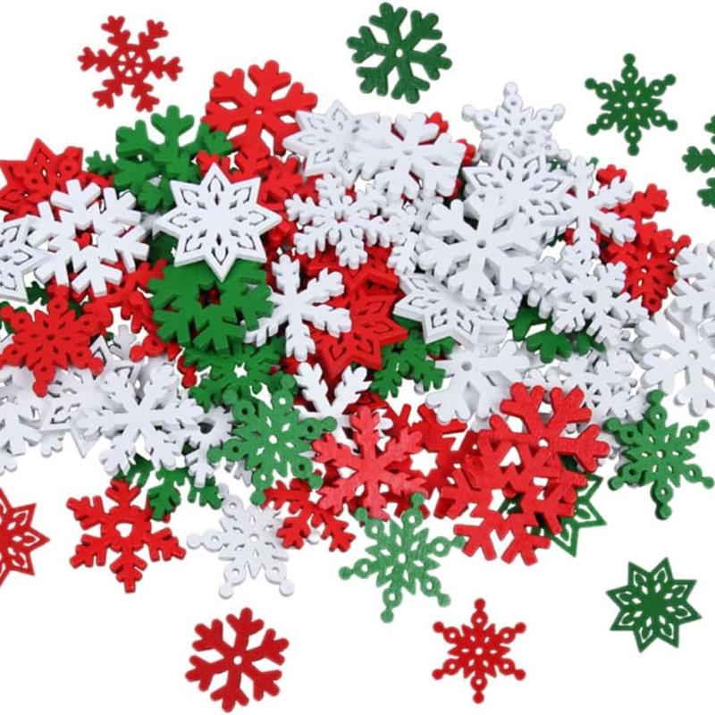 50 Stück gemischte Weihnachts-Schneeflocken-Holzchips 2026 Neujahrsparty Haus-Tischdekoration Zubehör DIY Scrapbooking Bastelgeschenke