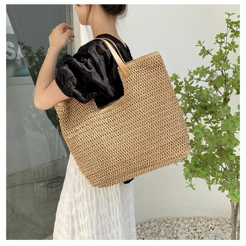 Large capacity shoulder straw bag women's new simple straw bag underarm tote bag portable woven bag holiday beach bag