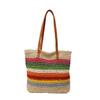 Neue Regenbogen Ein-Schulter Strohtasche Handgewebte Tasche Damen Große Kapazität Tragetasche Badeort Strandtasche