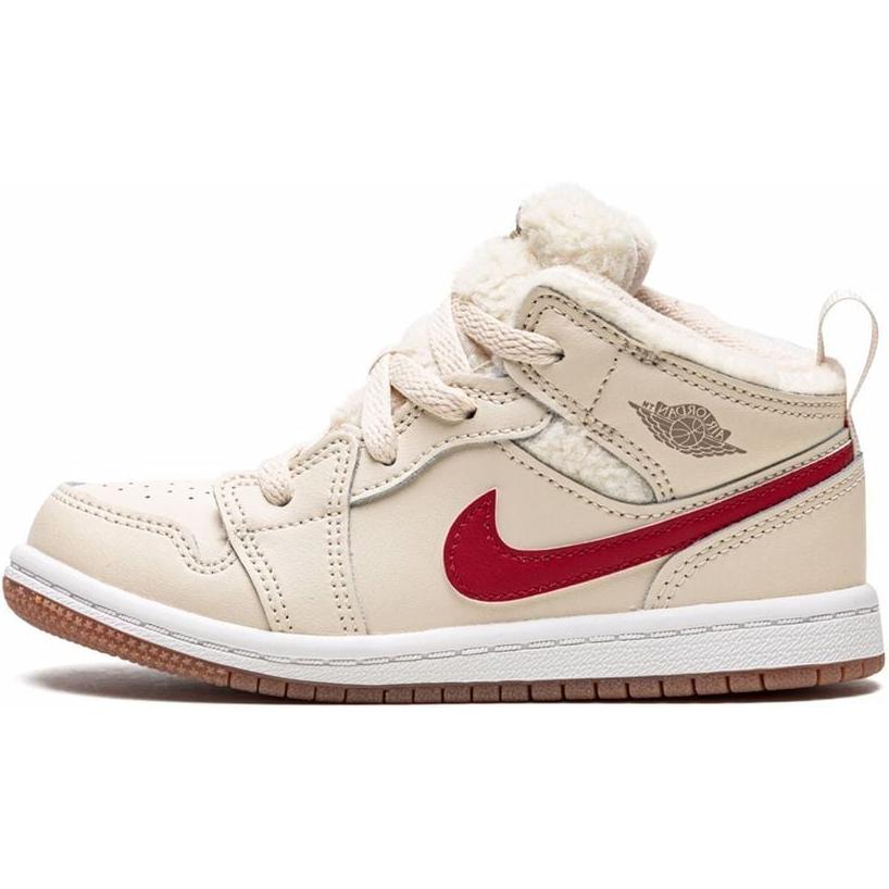 Air Jordan 1 Mid Utility TD Fleece Baby-Sneakers Tan Pearl-White Dark-Driftwood DO2209-264