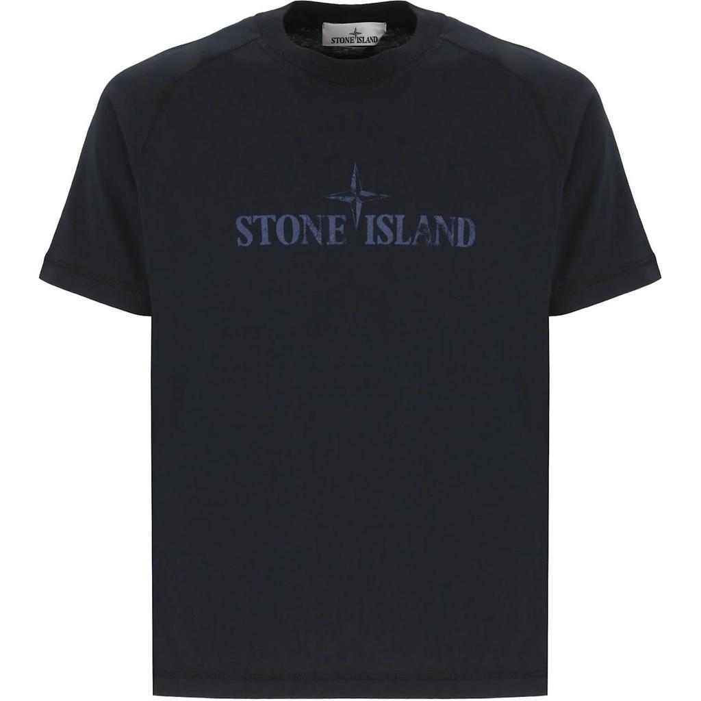 Stone Island Ss25 Letter Print Crew Neck Raglan Short Sleeve T-Shirt Men T-Shirts Navy-Blue K1S1521000-20S0081-V0020