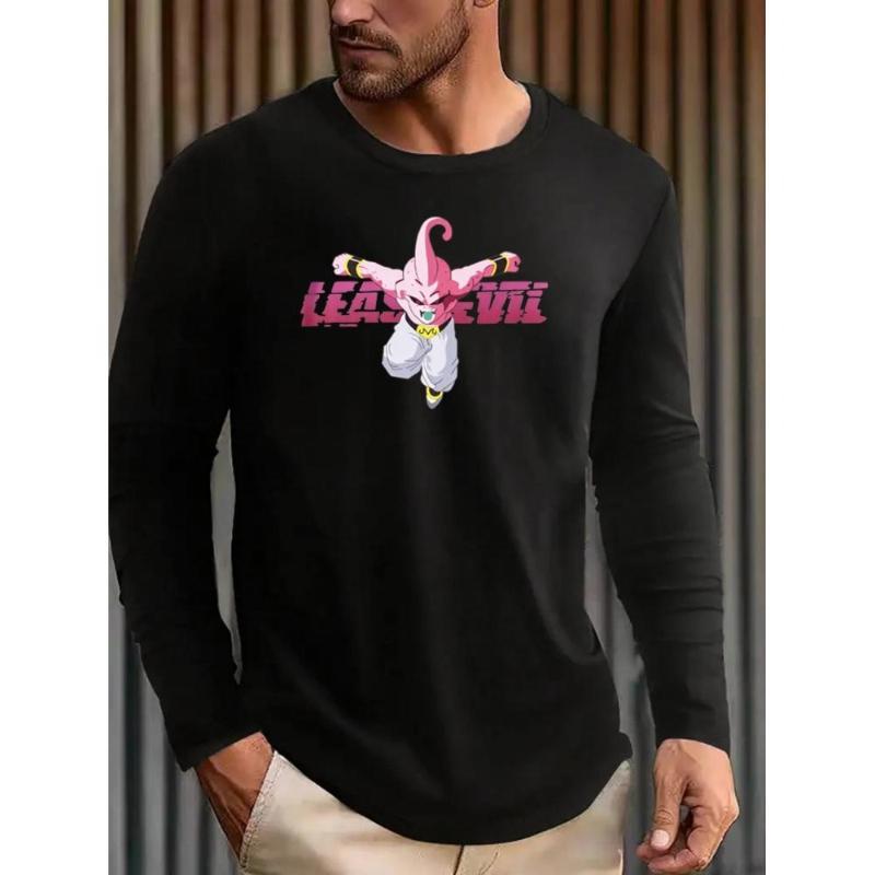 Dragon Balls Men's Crew Neck Long Sleeve Tee, Minimalist Design, Lightweight Polyester, Spring Autumn Top